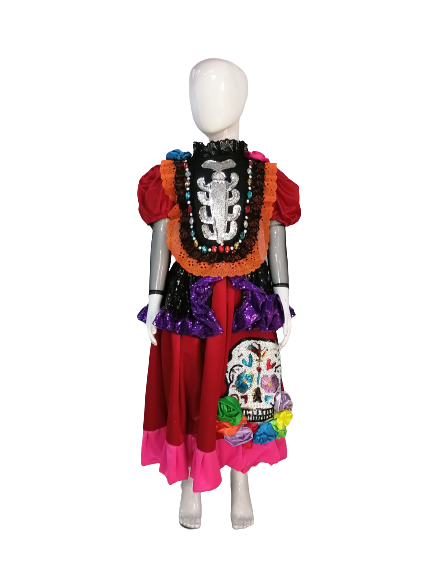 Vestido Disfraz Catrina Calavera (Aplicacion Calavera en lentejueja) de lujo halloween para niñas